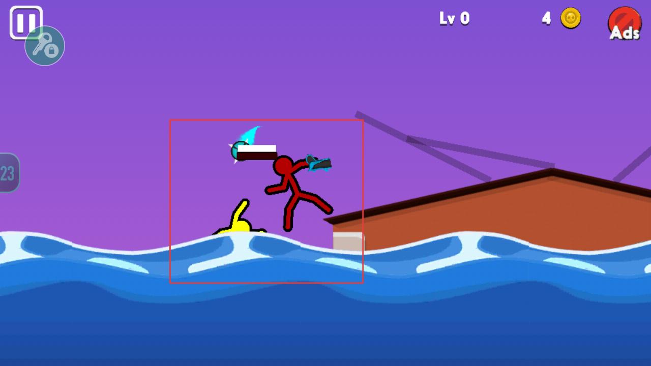 4、若火柴人掉落水中則戰(zhàn)斗失敗,需在平臺上保持戰(zhàn)斗,擊敗敵方火柴人以獲得勝利。