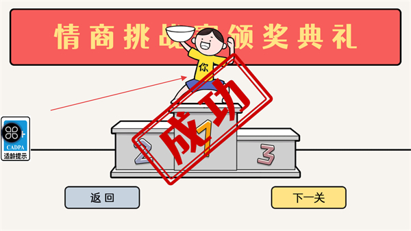 3、完成當(dāng)前關(guān)卡后,點(diǎn)擊下一關(guān)進(jìn)入更復(fù)雜的情商挑戰(zhàn),關(guān)卡難度逐步提升,涉及的社交場景和人際問題更加多樣化。