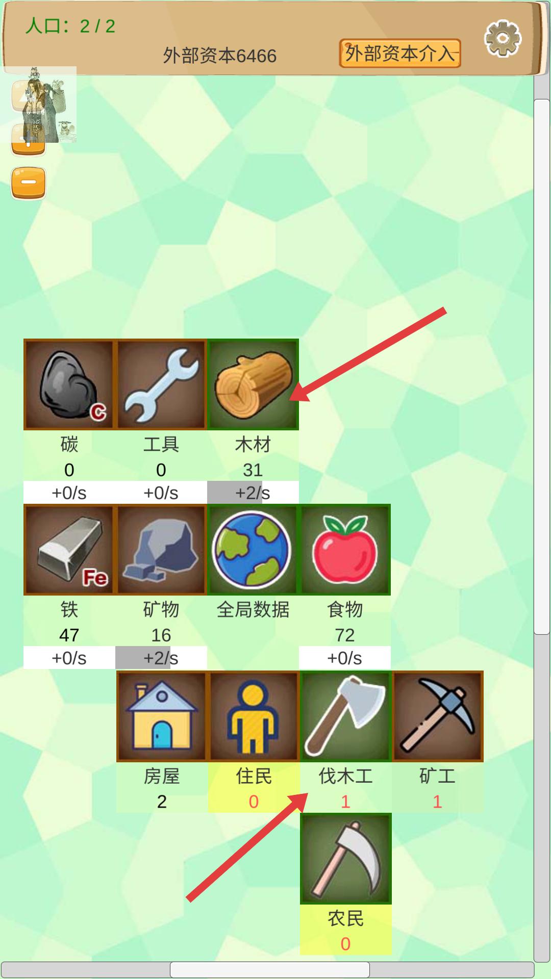 4、當人口達到2/2時,可解鎖伐木工、礦工等職業(yè),合理分配住民到這些職業(yè),能提升木材、礦物等資源的產出,同時關注碳、鐵等資源積累,推動生產鏈升級。