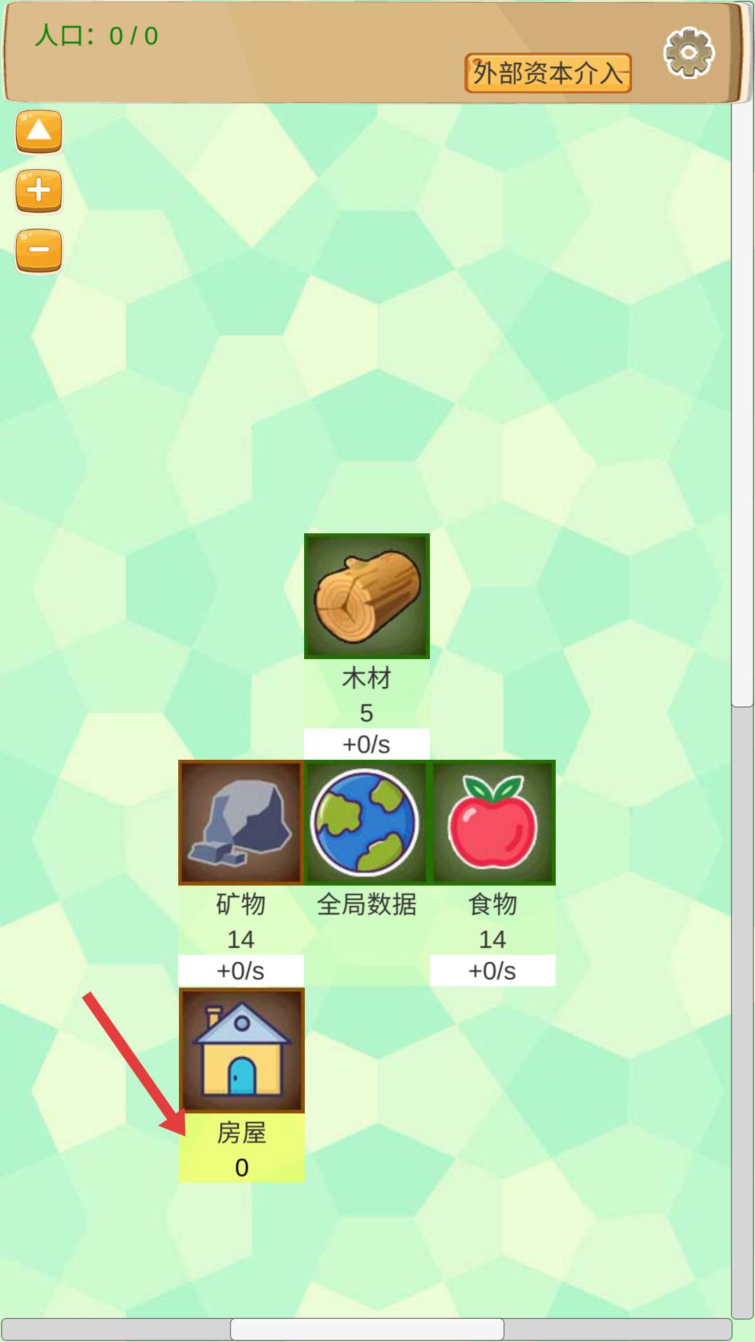 4、當(dāng)收集到5個木材后,會解鎖房屋等新內(nèi)容,此時需關(guān)注房屋的發(fā)展,進一步推動生產(chǎn)鏈的升級。