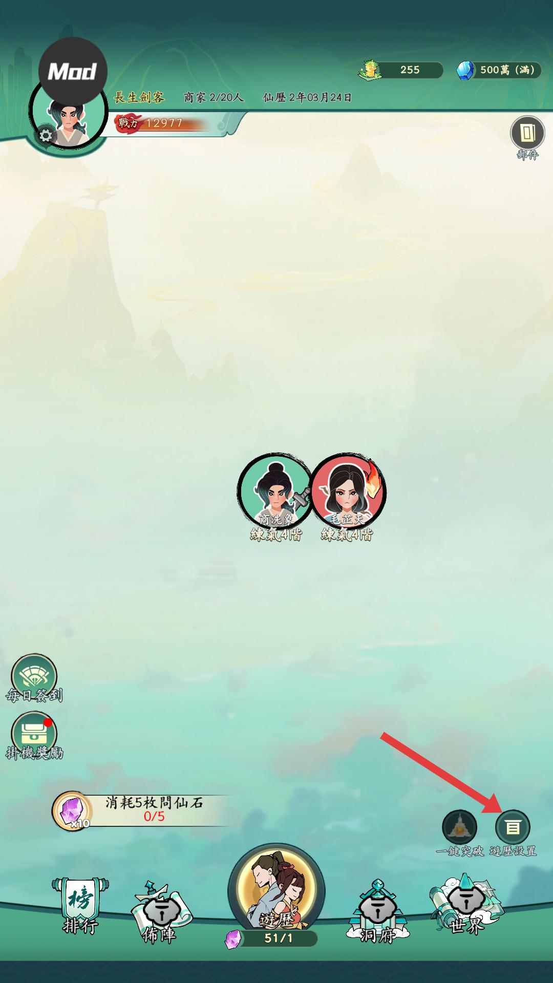1、在游戲主界面點(diǎn)擊游歷設(shè)置,可進(jìn)入相關(guān)設(shè)置界面,界面中還有每日簽到、掛機(jī)獎(jiǎng)勵(lì)等功能,需合理利用這些功能提升游戲進(jìn)度。