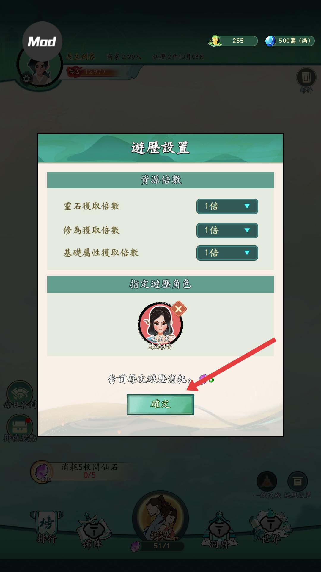 4、指定好游歷角色后,點(diǎn)擊確定按鈕,即可完成游歷設(shè)置,開始角色的游歷過程,需注意每次游歷的消耗,合理規(guī)劃游歷次數(shù)。