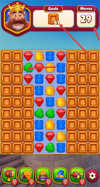 2、關(guān)卡內(nèi)需在29步打破51個箱子觀察分布,優(yōu)先消除箱子相鄰元素造匹配合理規(guī)劃每一步,避免浪費步數(shù)逐步達成目標。