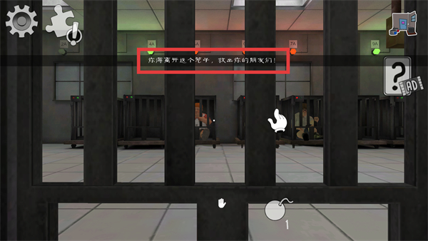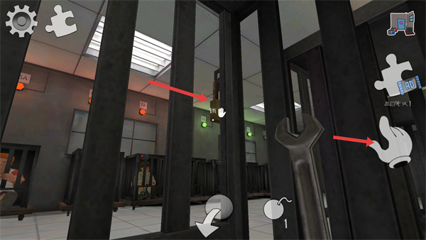 3、然后就可以拿著扳手,對準籠子上方的鎖,按照提示操作點擊手掌進行互動開鎖,這是離開籠子的重要步驟需精準操作。