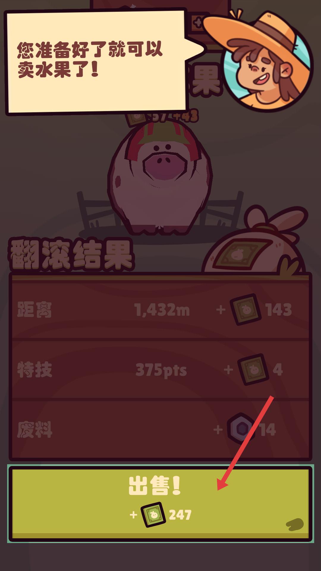 4、翻滾結(jié)束后進(jìn)入結(jié)算界面,點(diǎn)擊出售按鈕,可將蘋果賣出獲取貨幣收益,需及時出售積累資源。