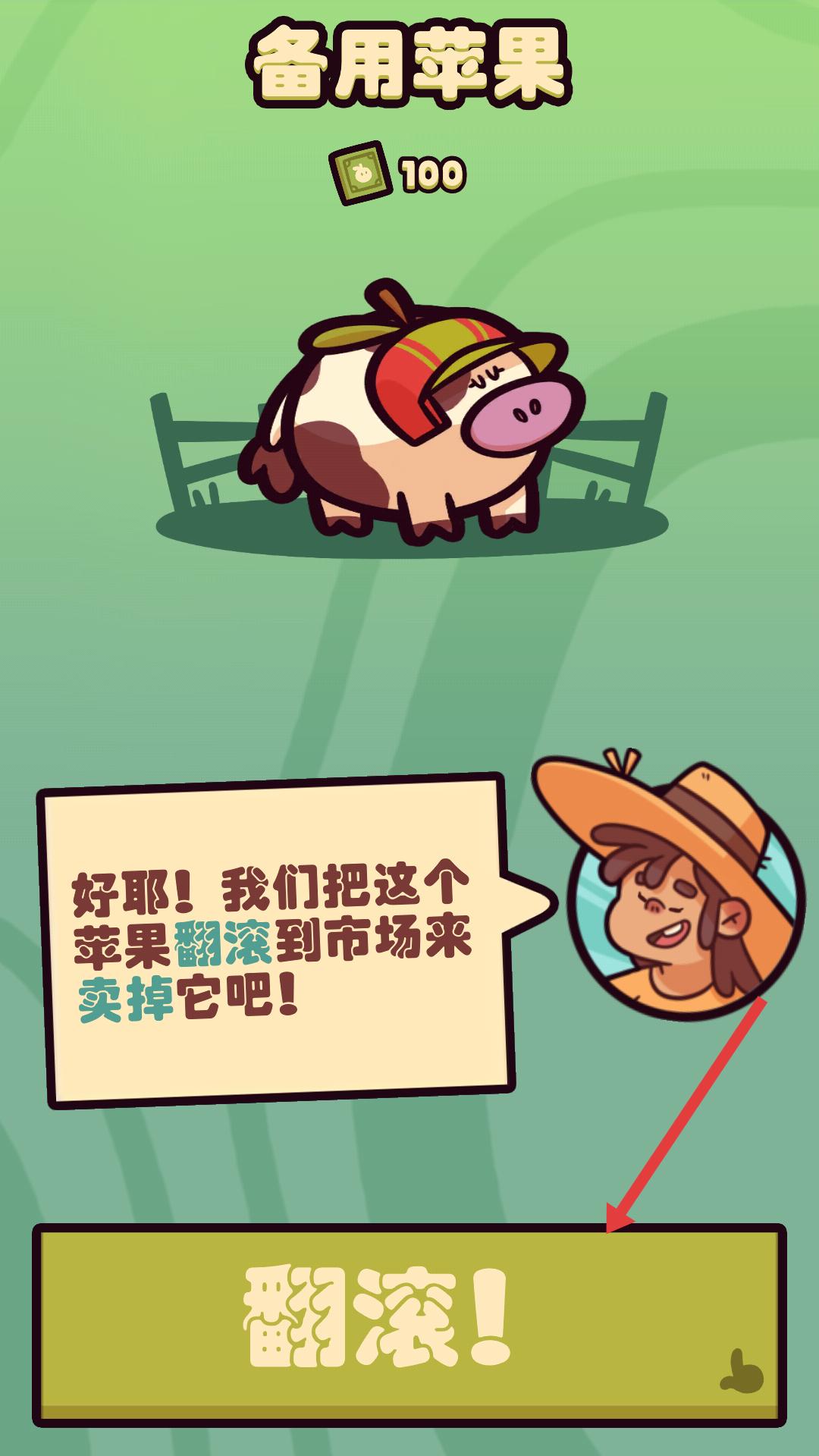 1、在游戲界面點(diǎn)擊翻滾按鈕,可讓備用蘋果開始向市場翻滾,目標(biāo)是將蘋果賣到市場獲取收益。