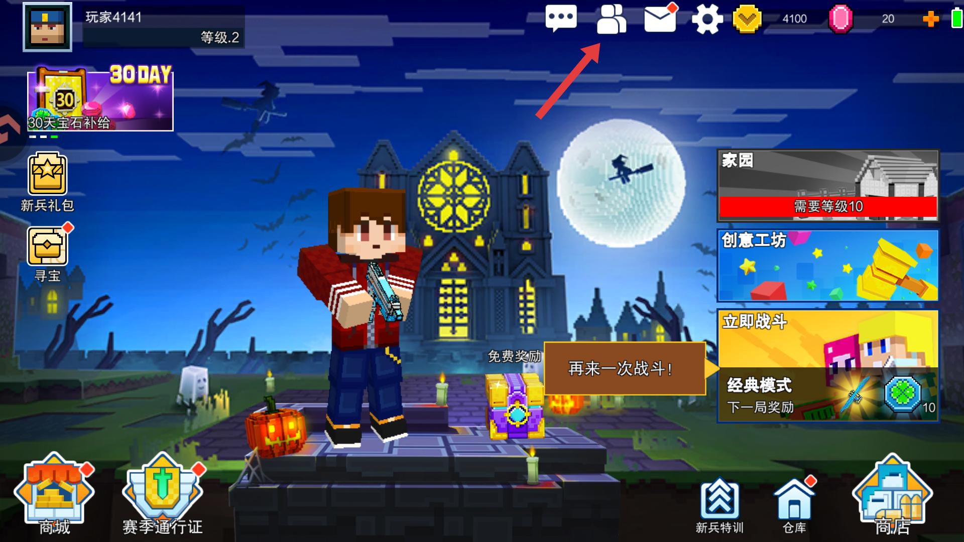 2、進(jìn)入游戲主界面后,點(diǎn)擊上方好友圖標(biāo),可進(jìn)入好友系統(tǒng)界面,界面還有聊天、郵件等功能,需根據(jù)需求選擇功能入口。