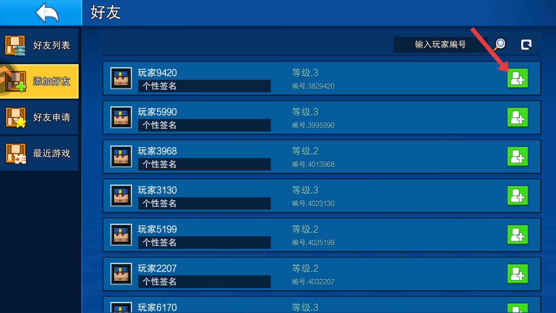 3、在好友系統(tǒng)的添加好友界面,可看到推薦玩家列表,點(diǎn)擊玩家右側(cè)的添加好友按鈕,可向該玩家發(fā)送好友申請。