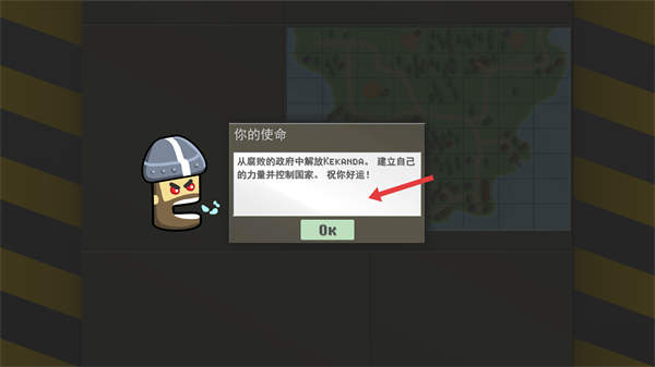 1、明確使命是從中解放KEKANDA建立自身力量并控制國(guó)家,點(diǎn)擊OK開(kāi)啟游戲征程牢記目標(biāo)推進(jìn)游戲。