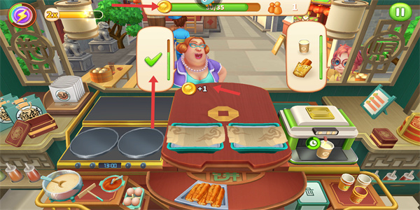 3、成功完成顧客的美食訂單后,可獲得金幣獎(jiǎng)勵(lì),積累這些獎(jiǎng)勵(lì)用于提升店鋪設(shè)施或解鎖新的美食品類。