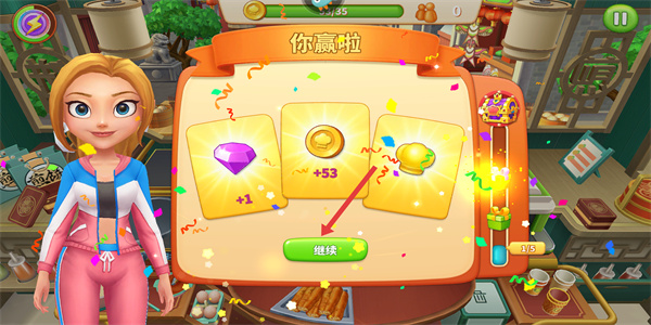 4、通關(guān)后點(diǎn)擊繼續(xù),開啟新的關(guān)卡挑戰(zhàn),不斷拓展美食經(jīng)營(yíng)的業(yè)務(wù),在舌尖小鎮(zhèn)打造更具規(guī)模的美食帝國(guó)。