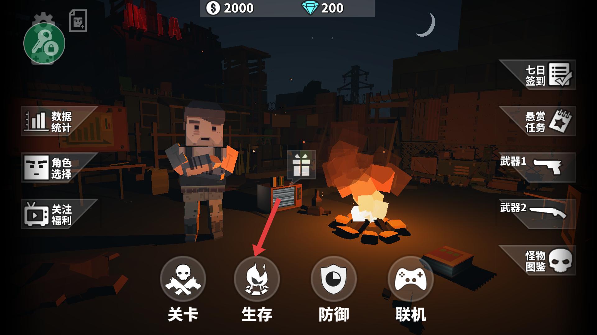 1、在游戲主界面點(diǎn)擊生存按鈕,可進(jìn)入生存模式,需根據(jù)游戲目標(biāo)選擇生存模式開啟挑戰(zhàn)。