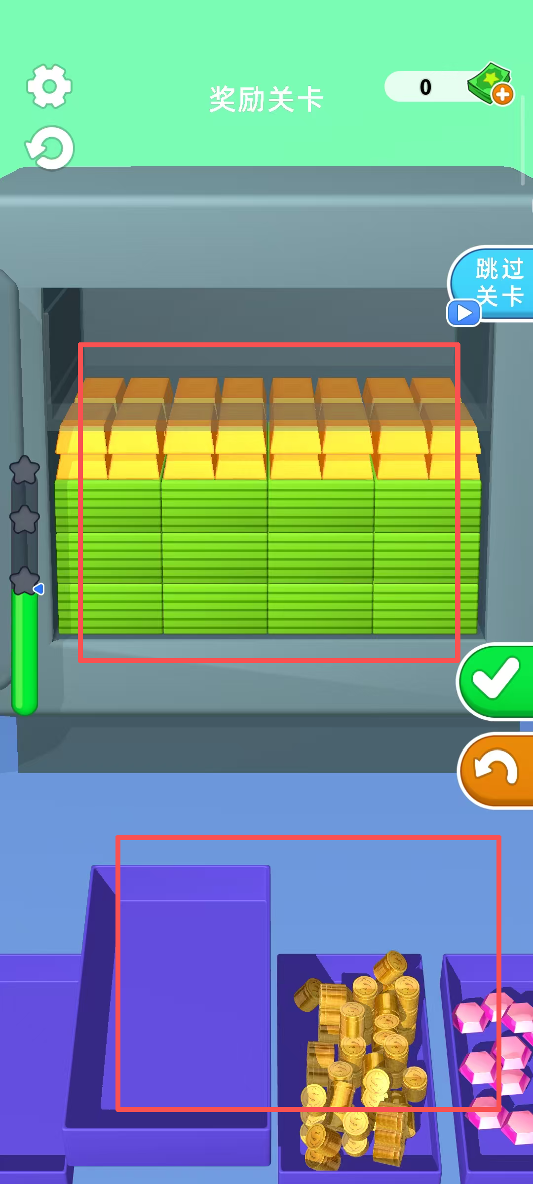 4、完成資源整理后,保險箱會重新裝填不同層級的資源,繼續(xù)重復(fù)分類操作,不斷收集資源以完成獎勵關(guān)卡的挑戰(zhàn)。
