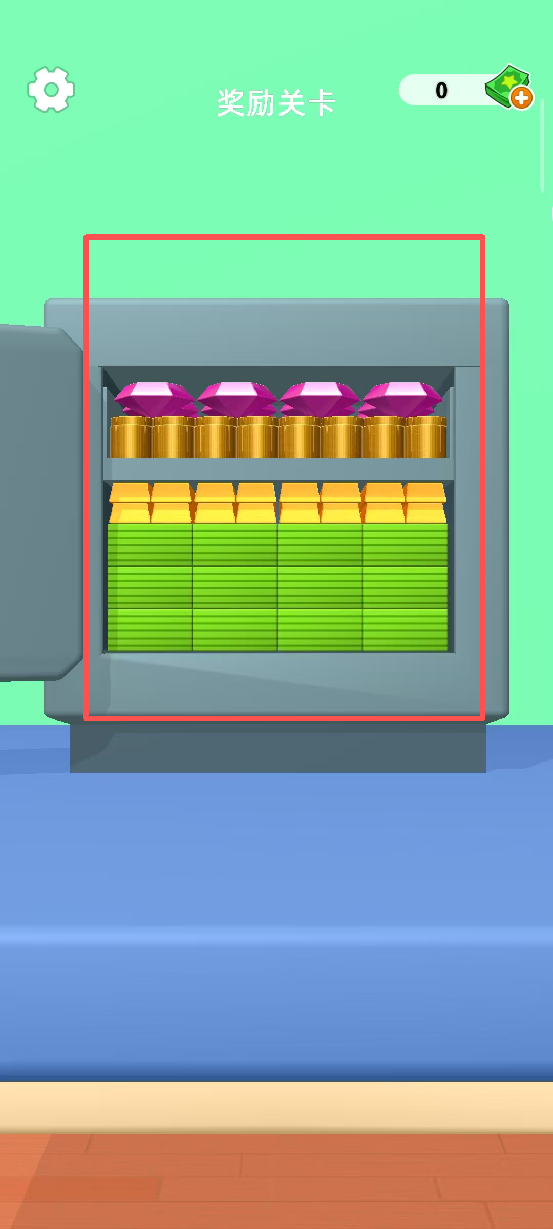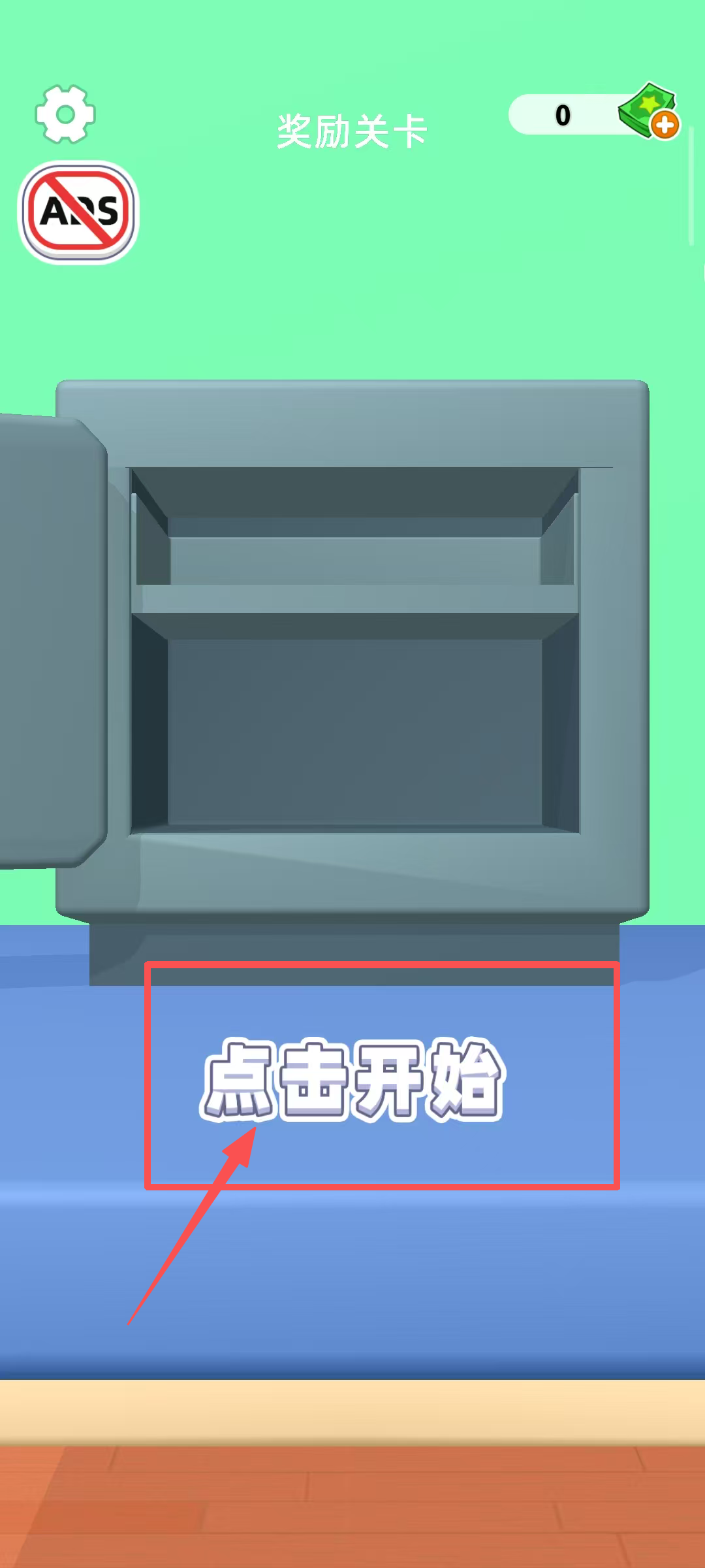 1、點擊開始按鈕進(jìn)入獎勵關(guān)卡,界面有保險箱和下方的容器,需開啟保險箱收集里面的資源,推進(jìn)關(guān)卡進(jìn)程。