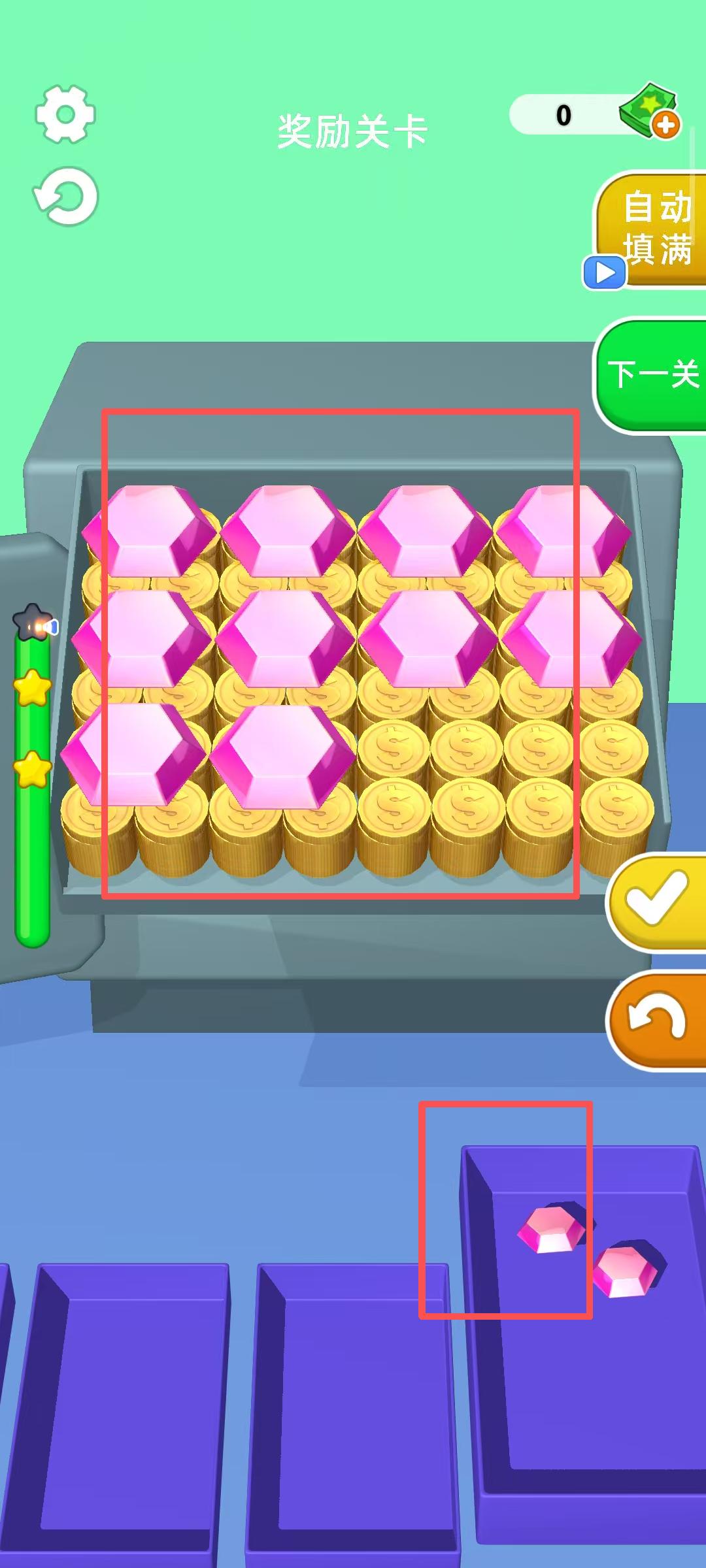 3、整理過程中會出現(xiàn)粉色鉆石等資源,要準(zhǔn)確將其放入對應(yīng)的容器,確保資源分類正確,完成分類可解鎖新內(nèi)容。