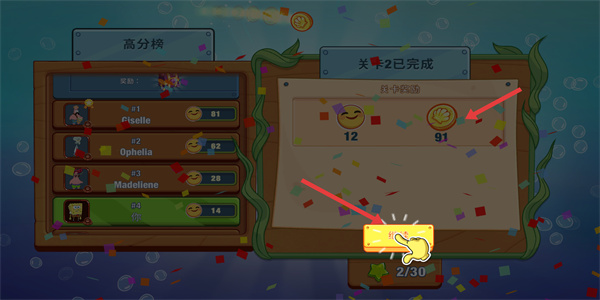 4、完成關(guān)卡后獲得金幣獎(jiǎng)勵(lì),點(diǎn)擊繼續(xù)進(jìn)入新關(guān)卡,持續(xù)開(kāi)展蟹堡王的經(jīng)營(yíng)挑戰(zhàn)。