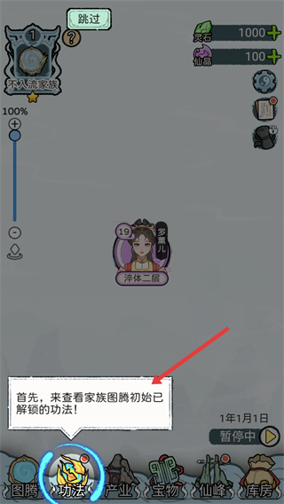 4、查看家族圖騰初始解鎖的功法合理分配給族人修煉,提升族人實(shí)力同時(shí)關(guān)注靈石、仙晶等資源為家族發(fā)展提供支持。