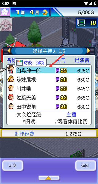 4、游戲設(shè)有豐富的節(jié)目運營系統(tǒng),包括經(jīng)費控制、任務(wù)完成與資源調(diào)配,使玩家在游戲中體驗到電視臺經(jīng)營的完整流程。