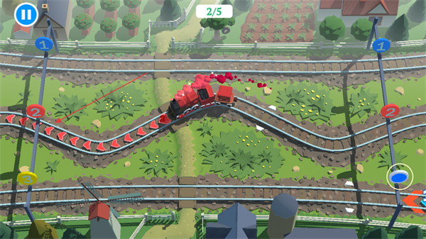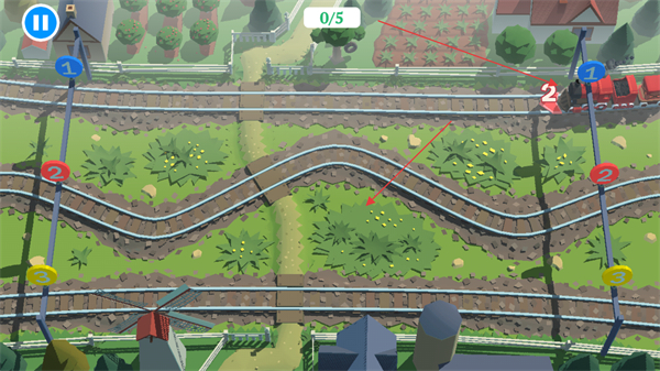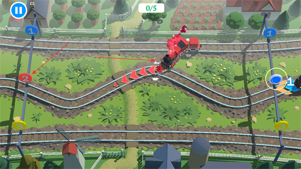 3、點(diǎn)擊不同編號(hào)的軌道開關(guān),切換軌道方向,引導(dǎo)火車行駛至正確路線,確?;疖嚢踩?zhǔn)確地抵達(dá)目的地。