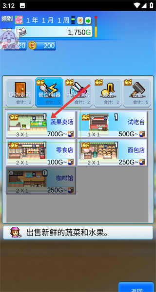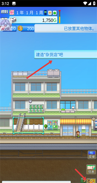 2、根據(jù)游戲提示,準(zhǔn)備建造雜貨店,隨后找到建造店鋪的入口,進(jìn)入店鋪選擇界面。