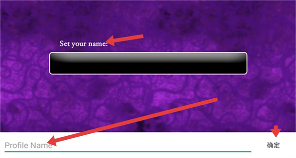 2、進(jìn)入命名界面在Set your name輸入框填寫喜歡的昵稱,點擊確定完成角色身份設(shè)定正式踏入游戲世界。
