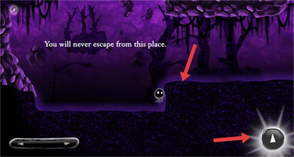 4、遇地形障礙時點擊右側(cè)向上箭頭按鈕讓角色跳躍跨越溝壑,掙脫You will never escape的禁錮推進(jìn)逃生進(jìn)程。