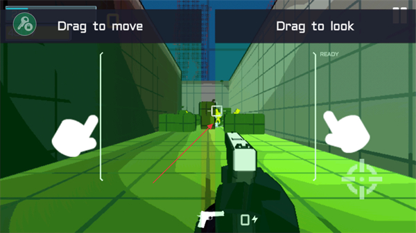 2、玩家通過拖拽操作控制角色移動和視角轉(zhuǎn)動,在科幻風(fēng)格的場景中探索,尋找敵人和資源點,為射擊戰(zhàn)斗做好準(zhǔn)備。
