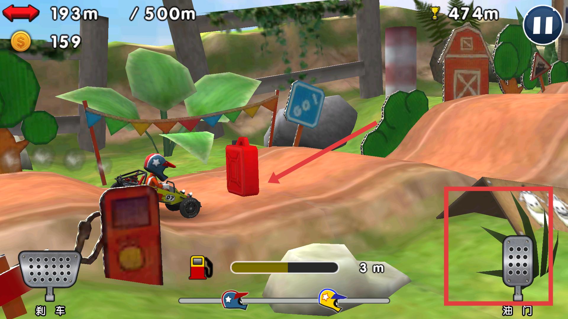 2、當(dāng)油量不足時(shí),注意賽道上的紅色油桶,調(diào)整駕駛方向,獲取油量補(bǔ)給,確保賽車能繼續(xù)行駛。
