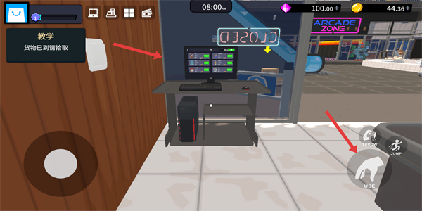 1、進入游戲場景,找到電腦位置并靠近,準備進行交互,開啟店鋪經(jīng)營的下單環(huán)節(jié)。