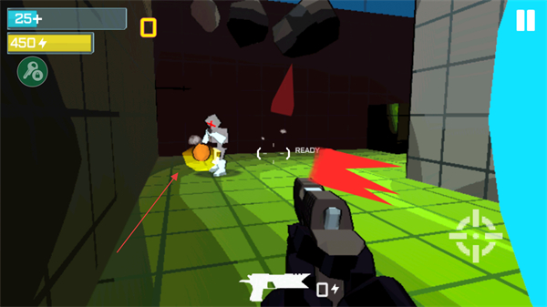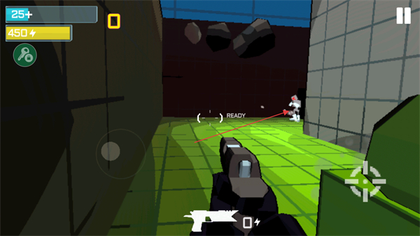 2、瞄準(zhǔn)場景中的機(jī)器人等敵人進(jìn)行射擊,通過移動(dòng)操作躲避敵人攻擊,在科幻風(fēng)格的關(guān)卡中展開戰(zhàn)斗。
