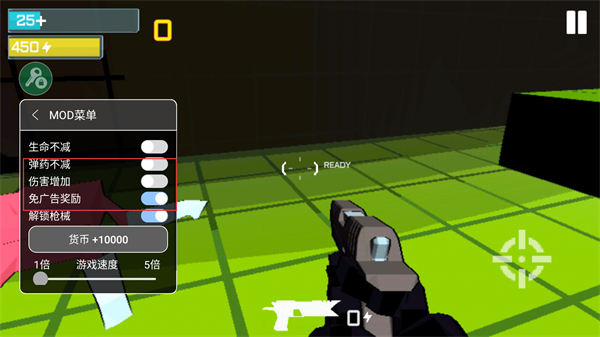 1、玩家進(jìn)入之后可點(diǎn)擊開啟生命不減、彈藥不減、傷害增加等內(nèi)置菜單功能,提升角色的生存能力和戰(zhàn)斗效率。