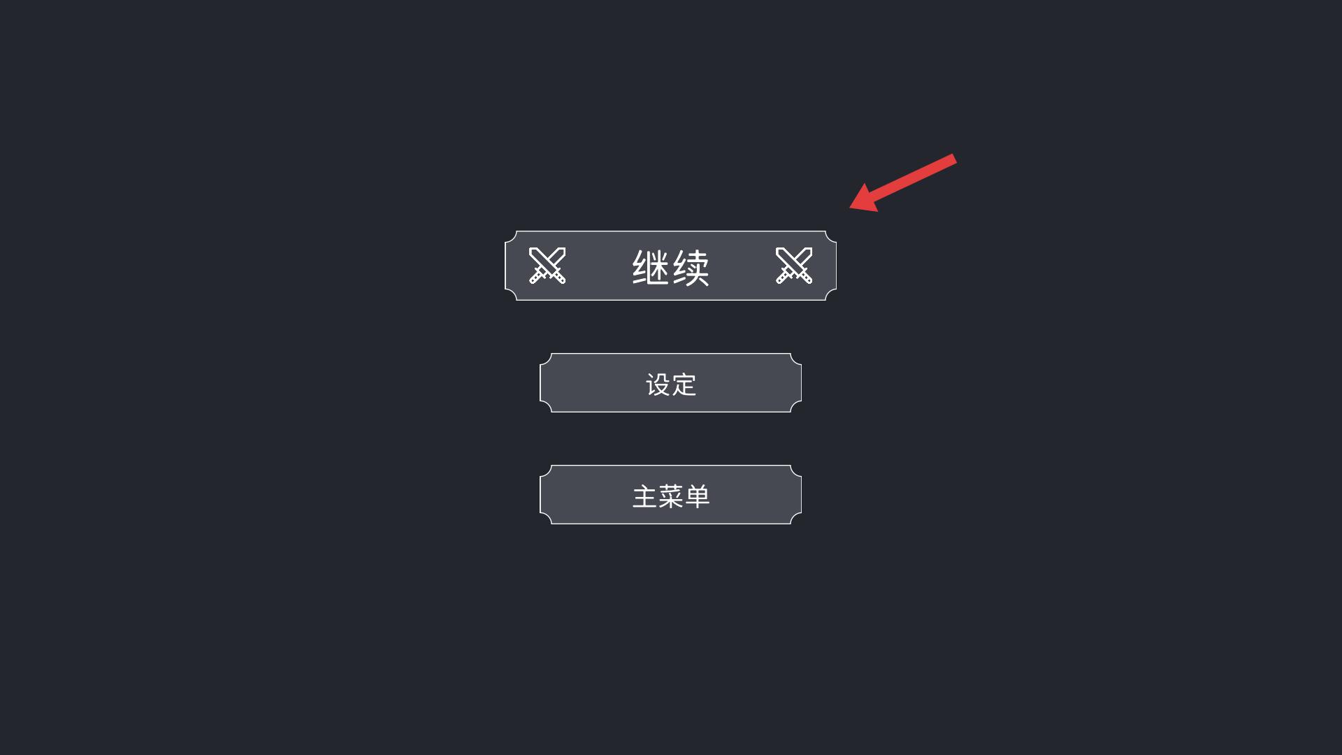 3、戰(zhàn)斗過程中若暫停,會出現(xiàn)繼續(xù),設(shè)定,主菜單三個選項,點擊繼續(xù)可回到戰(zhàn)斗,點擊主菜單可返回主界面。