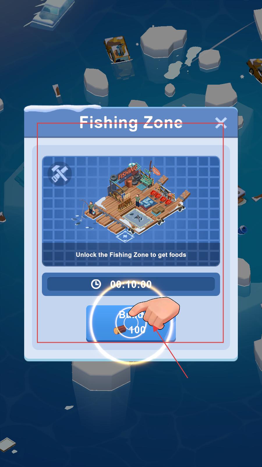 1、玩家進入游戲,可以花費100木材建造釣魚區(qū),在解鎖后可獲取食物,這是生存與發(fā)展的重要資源獲取途徑。