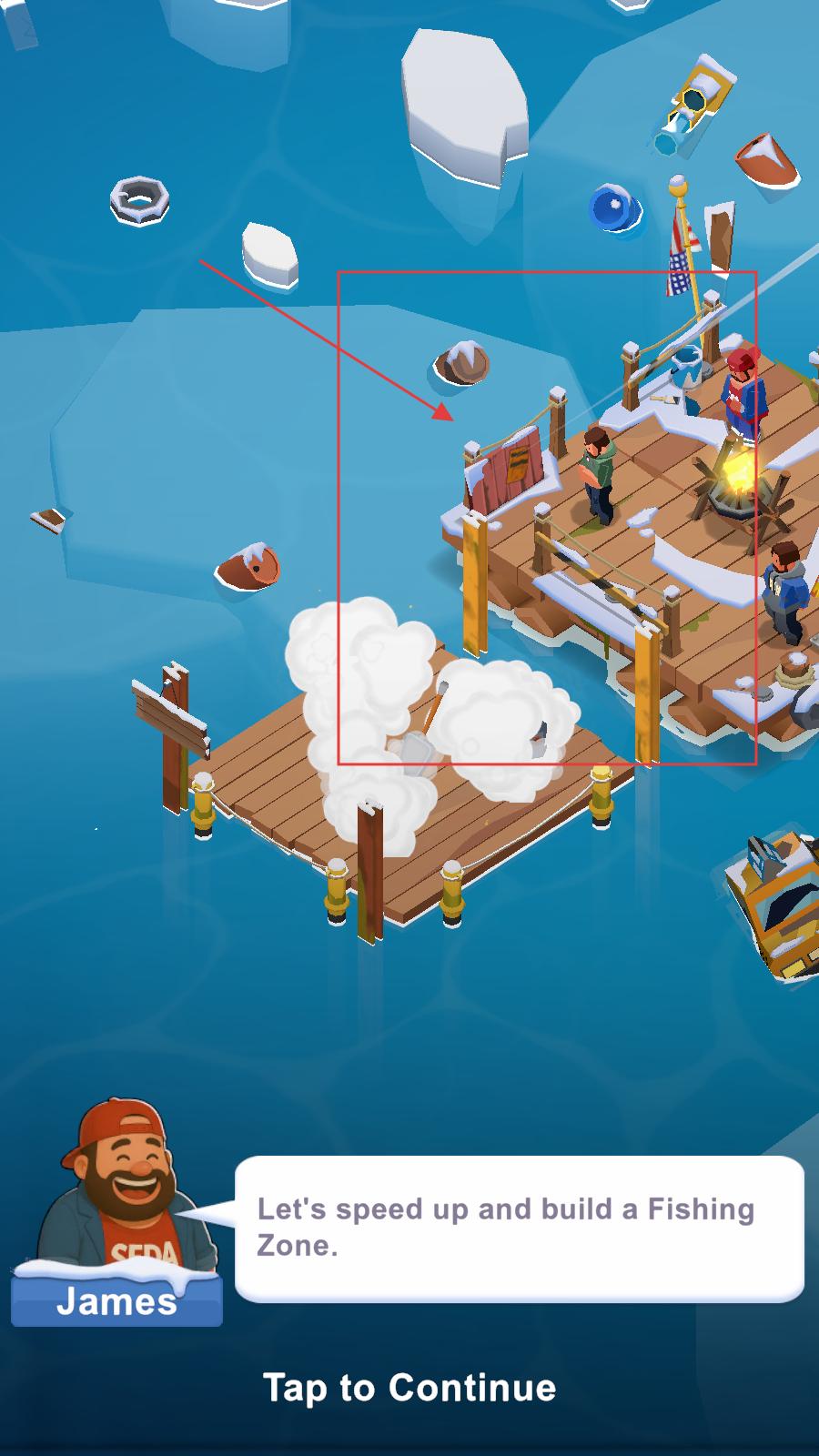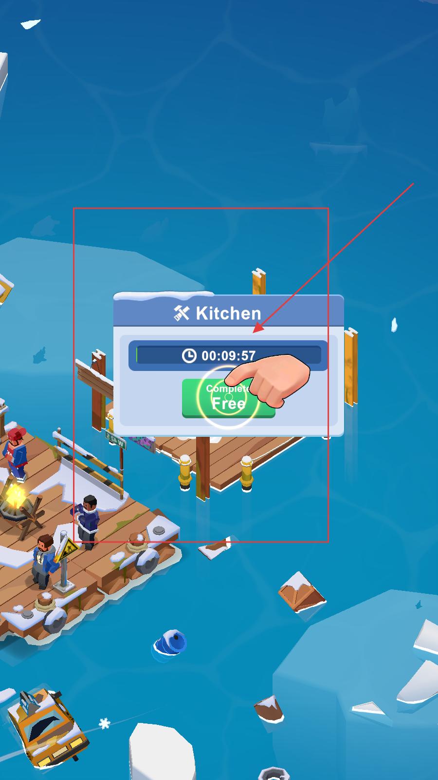 2、玩家可以加速建造釣魚區(qū),完成后可開展釣魚活動,為角色提供食物補給,助力在冰雪環(huán)境中生存。