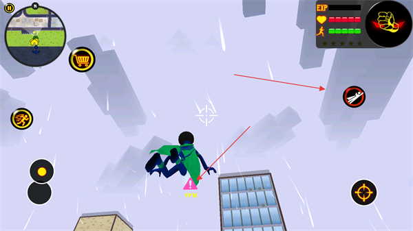 1、操控火柴人在城市建筑間飛行、攀爬,自由探索地圖,發(fā)現(xiàn)任務(wù)點(diǎn)、資源點(diǎn)和隱藏區(qū)域,解鎖城市的不同區(qū)域。
