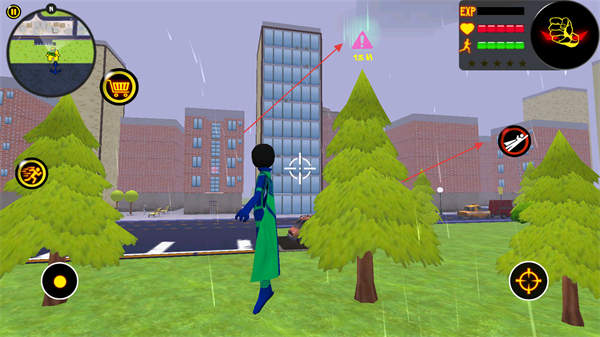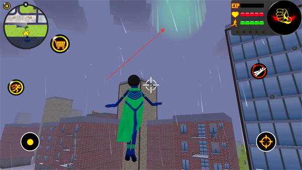 3、操控火柴人飛行,在城市建筑間穿梭抵達(dá)高空任務(wù)區(qū)域,應(yīng)對空中或高層建筑上的敵人,展開立體式戰(zhàn)斗。