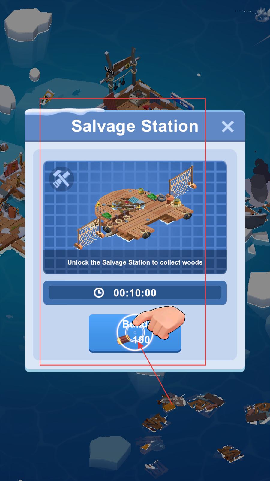 2、玩家可以花費(fèi)100木材建造打撈區(qū)域,在打撈區(qū)域解鎖后玩家可以可收集木材,為后續(xù)建筑建造提供資源支持。