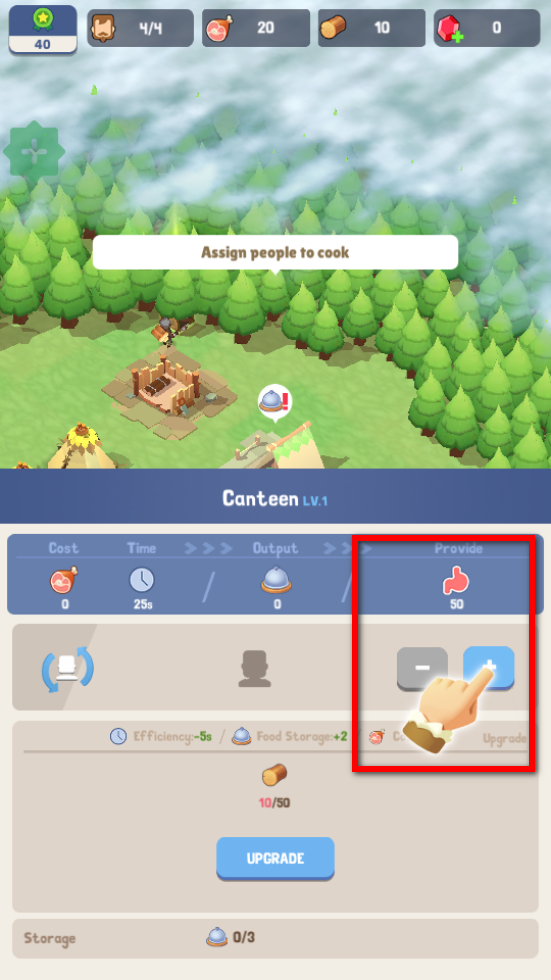 2、進(jìn)入食堂界面,點(diǎn)擊加號(hào)分配人員烹飪,以此提升食堂效率,產(chǎn)出食物滿足幸存者需求,同時(shí)還能提升相關(guān)屬性助力營(yíng)地發(fā)展。