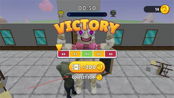 4、成功完成躲藏或搜尋任務(wù)之后,將獲得VICTORY勝利結(jié)算領(lǐng)取金幣獎(jiǎng)勵(lì),然后進(jìn)入下一關(guān)的捉迷藏挑戰(zhàn)。