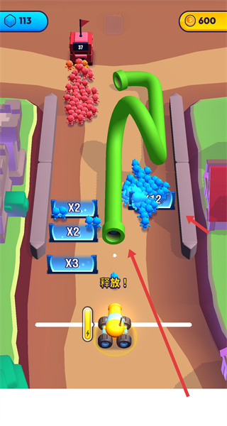 3、玩家利用綠色管道分流敵人讓我方隊(duì)伍走含高倍數(shù)如X12路徑,能夠集中力量突破敵人防線。