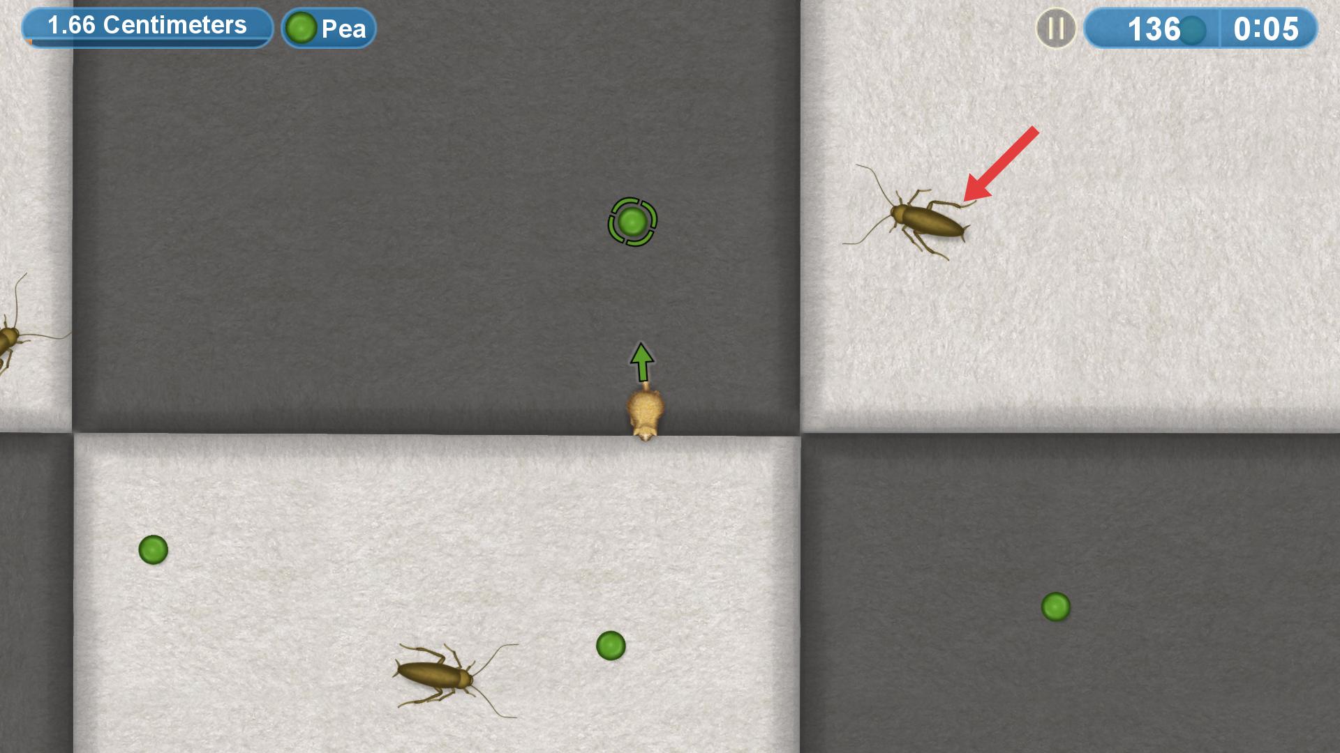 3、當尺寸增長到可吞噬蟑螂時,要主動尋找蟑螂并將其吞噬,繼續(xù)增大自身尺寸,同時留意新出現(xiàn)的可食用物體,合理規(guī)劃移動路線以高效吞噬成長。