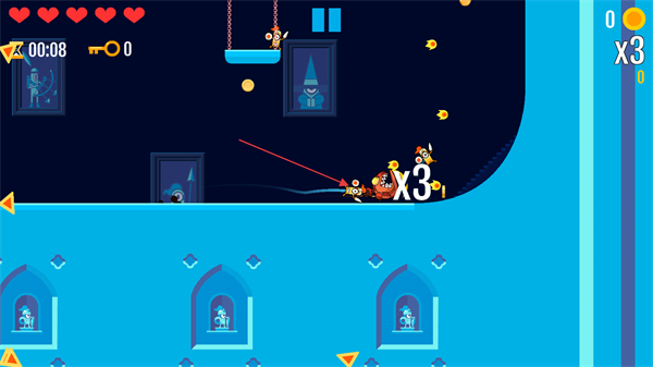 1、玩家操控角色在城堡場景中移動,收集散落的金幣,積累資源用于解鎖新角色或升級能力,提升游戲體驗(yàn)。
