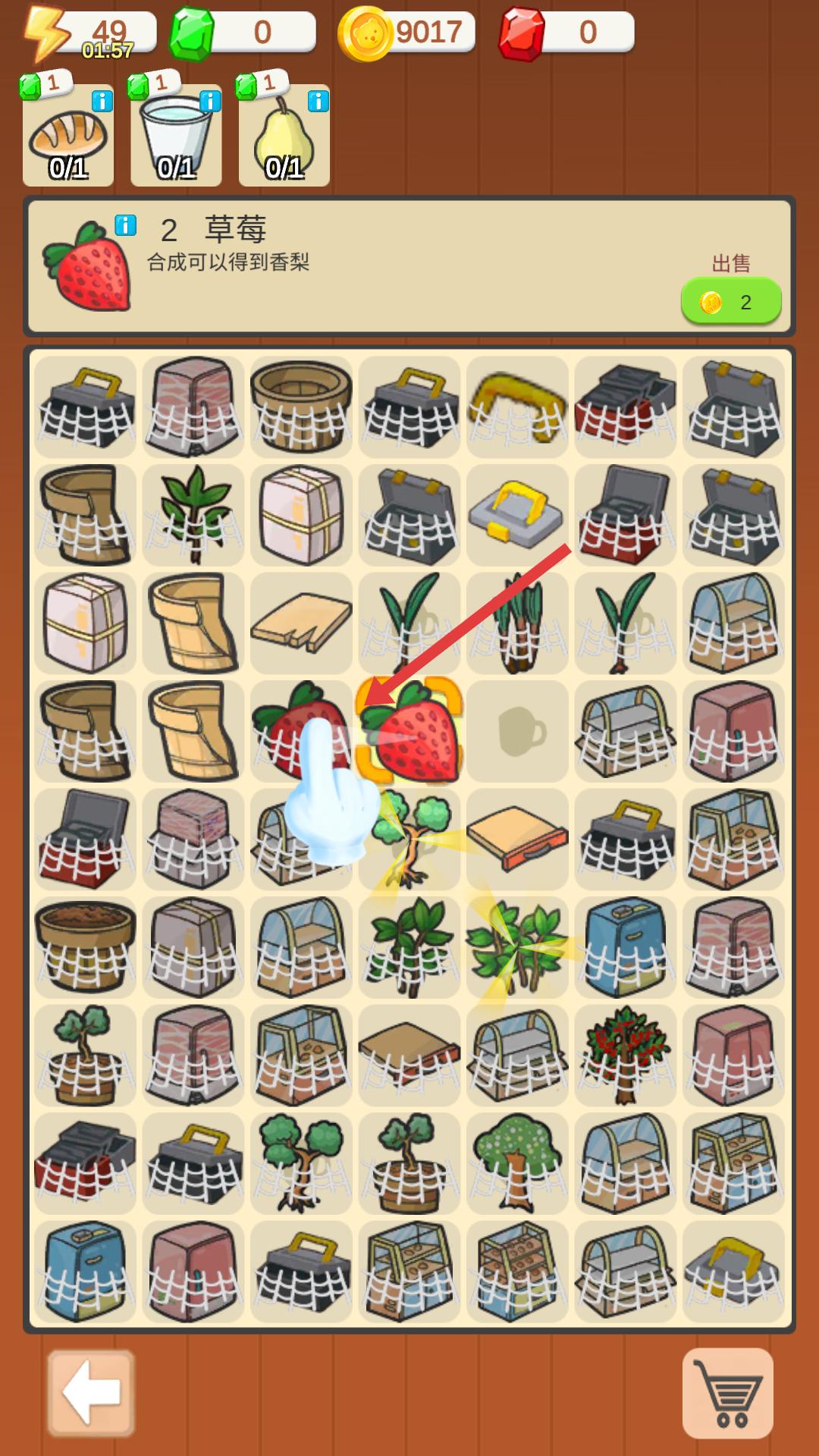 4、在合成界面中將相同的物品如草莓進(jìn)行合成,獲得新的物品,用于店鋪的食材供應(yīng)或其他經(jīng)營需求。
