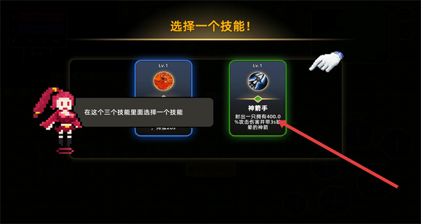 2、首次戰(zhàn)斗前會(huì)彈出技能選擇界面,界面左側(cè)顯示技能效果說明,依據(jù)自身戰(zhàn)斗風(fēng)格挑選,若喜歡遠(yuǎn)程攻擊就選神射手該技能能提升弓箭傷害并附加穿透效果助力。