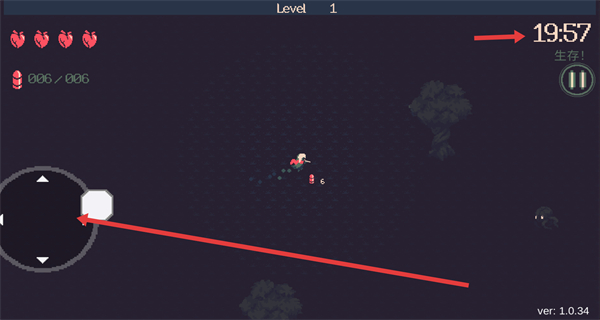 2、進入關(guān)卡左上角顯示血量彈藥右上角是生存倒計時,用左側(cè)搖桿靈活控制角色移動,探索場景時留意倒計時,合理分配時間既要收集彈藥血包,也別因磨蹭讓怪物包圍。