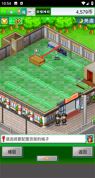 3、根據(jù)提示選擇要配置貨架的格子,在店鋪內(nèi)布置貨架,確定時(shí)裝擺放的位置。