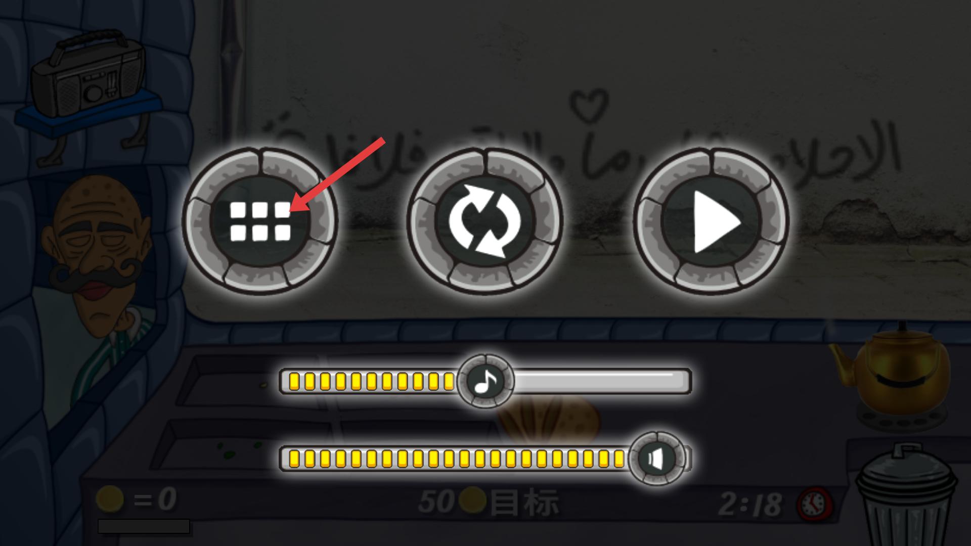 2、在經(jīng)營界面,注意右上角的箭頭按鈕,點擊它可進入相關功能或場景切換,助力餐館經(jīng)營操作。