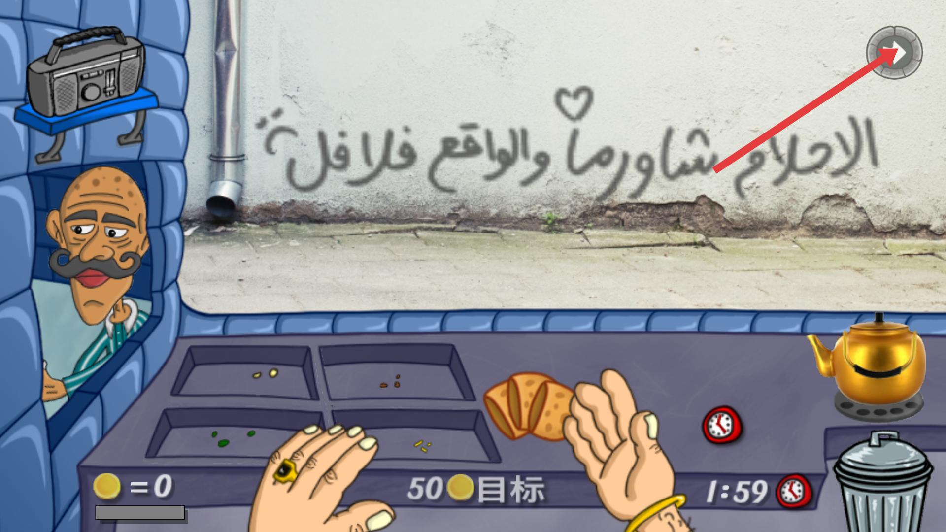 1、進入游戲后,找到標有【法拉費爾之王餐廳】的區(qū)域,點擊帶有開餐館字樣的卷簾門,即可開啟餐館經(jīng)營之旅。