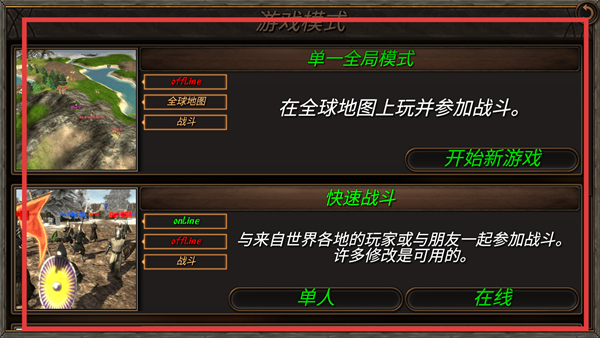 1、進(jìn)入游戲后先選擇游戲模式,可選擇單一全局模式或快速戰(zhàn)斗模式,根據(jù)喜好選擇后進(jìn)入下一步。