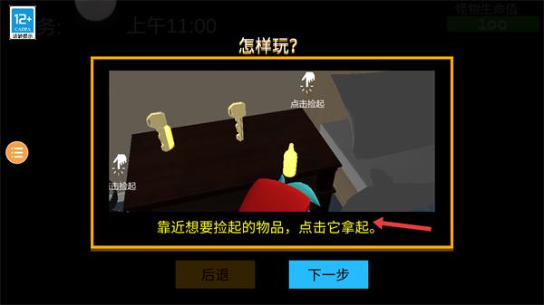 3、靠近物品后點擊撿起收集鑰匙等道具,掌握物品拾取方法為探索和逃生積累資源。